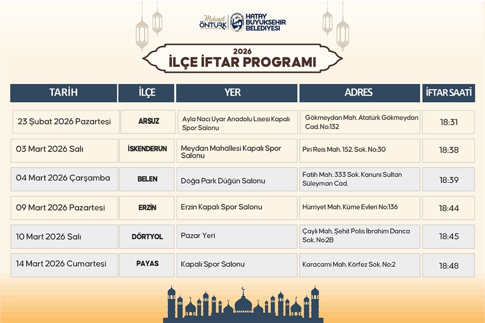 Hatay Büyükşehir Belediyesi (HBB), her yıl olduğu gibi bu yıl da Ramazan ayını kentin tamamına yayılan kapsamlı bir programla karşılamaya hazırlanıyor. 15 ilçenin tamamında kurulacak iftar sofraları ile ramazanın bereketi paylaşılacak.