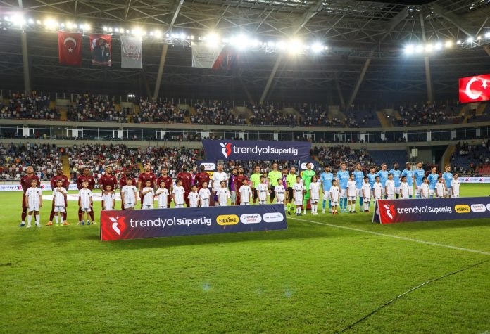 Küçük sporseverler, hakem ve bordo beyazlı takımın futbolcularıyla bir araya gelerek maç öncesinde gerçekleştirilen seremoniye de katıldı.