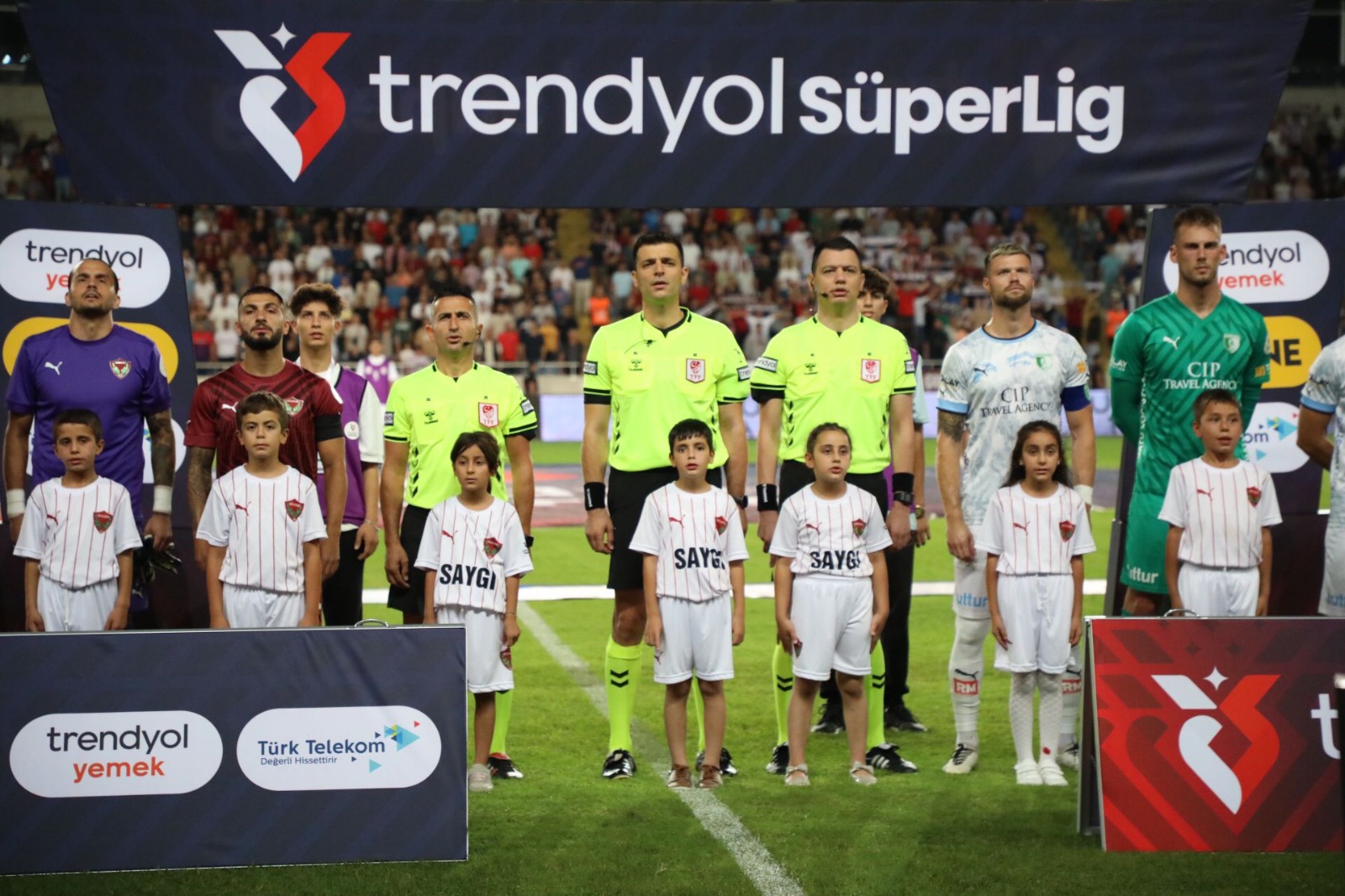 Minik sporseverler, bordo beyazlı takımın futbolcularıyla bir araya gelerek maç öncesinde gerçekleştirilen seremoniye de katıldı.