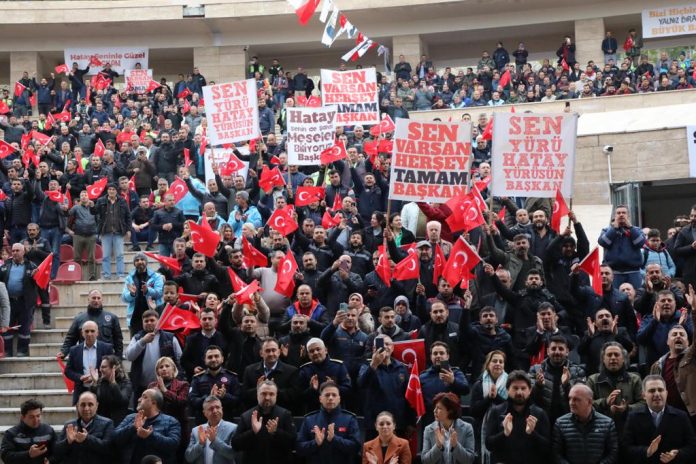 “Gazi Mustafa Kemal Atatürk ebediyete intikal etmeden önce Hatay’ı şahsi meselesi addetmiş. Biz de Hatay’ımıza sahip çıktık, çıkmaya da devam edeceğiz. Sizlerin neler çektiğini biliyorum. Bundan sonraki süreçte hep beraber sizlerle şehrimize sahip çıkmaya devam edeceğiz. Pırlanta gibi olan şehrimiz bizlere atamızın yadigârı onu kimseye vermeyiz. 3 dönemdir belediye başkanıyım. Şehrimizi hiç kimsenin eline bırakmayacağız. Haklı meselemizi feryadımızı biz bırakırsak kimse paylaşmayacak. Korkmuyoruz, çekinmiyoruz ve mücadelemiz devam ediyor. Hepinizle birlikte şehrimizi yeniden ayağa kaldıracağız.
