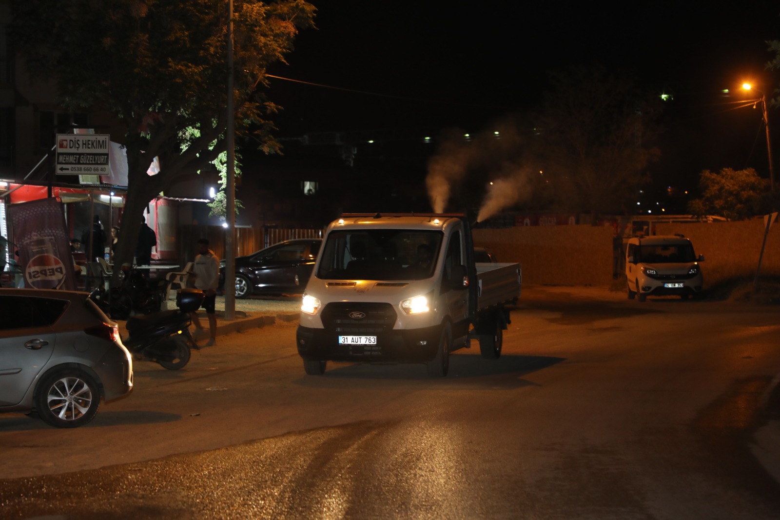 Hatay Büyükşehir Belediyesi (HBB), sıcaklıkların artmasıyla birlikte haşere ve sineklerle mücadele kapsamında gece ilaçlama çalışmalarını yoğunlaştırdı.