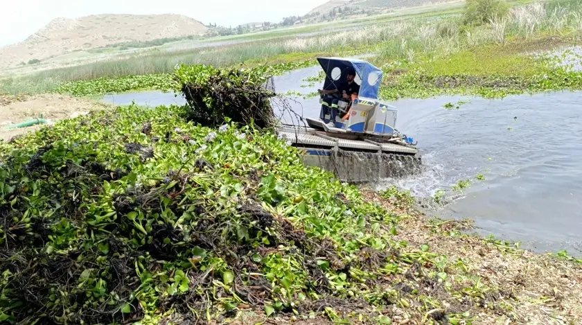 Kırıkhan ilçesinde bulunan Gölbaşı Gölü, istilacı su sümbüllerinden temizleniyor. Hatay Büyükşehir Belediyesi tarafından yürütülen temizlik çalışmaları aralıksız devam ediyor.