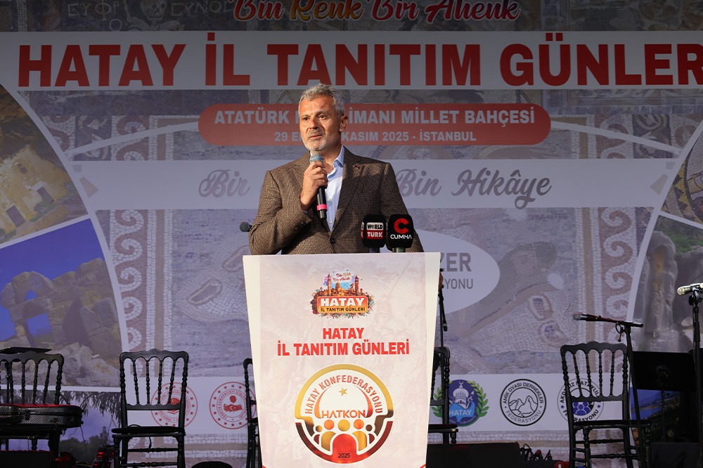 Hatay Konfederasyonu (HATKON) Genel Başkanı Hüseyin Yılmazer “Burada Hatay Konfederasyonu olarak şehrimizin mihenk taşlarının tamamını işlediğimiz “Bir Renk Bir Ahenk” temalı Hatay tanıtım günlerini icra ediyoruz. Hatay’dan gelerek bizleri onore eden tüm Hataylı belediye başkanlarımıza, siyasilerimize, bürokratlarımıza şahsım, konfederasyonumuz ve buradaki Hataylı hemşehrilerimiz adına bir kez daha teşekkür ediyorum.” dedi.