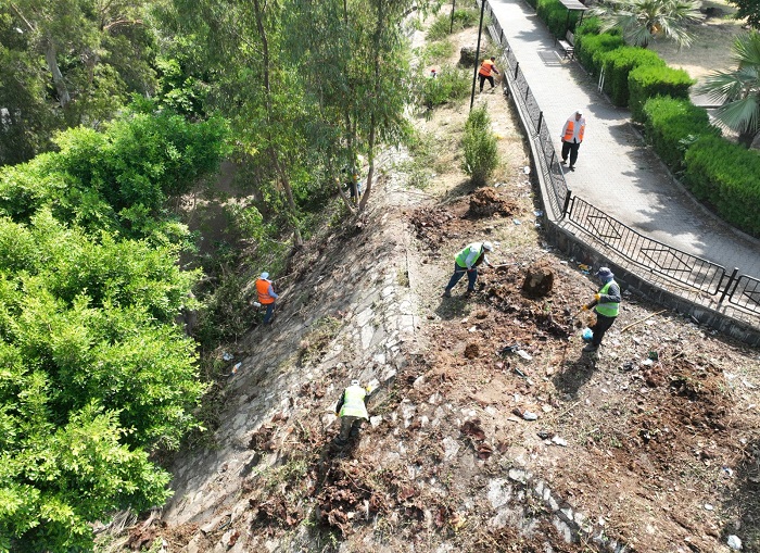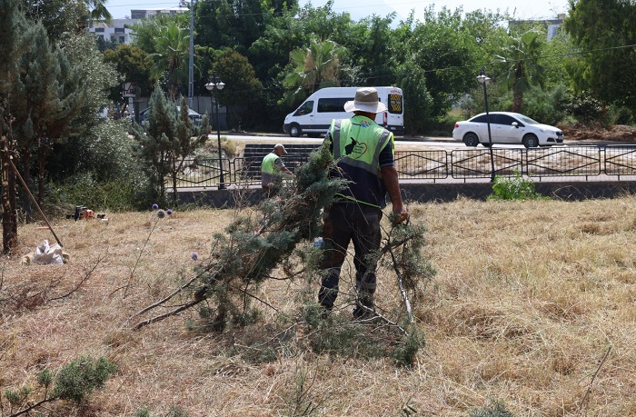 Çevre kirliliğinin önüne geçmek ve yarınlara temiz bir Hatay bırakmak parolasıyla hareket eden HBB ekipleri, park ve yeşil alanlarda yabani ot temizliği, ağaç budama, mıntıka temizliği, park aletlerinin dezenfektasyonu çalışmaları gerçekleştiriyor.