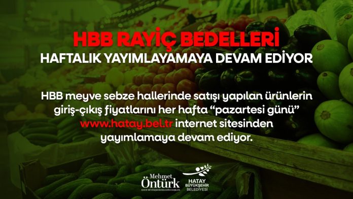 Hatay Büyükşehir Belediyesi, il genelinde meyve sebze hallerine giren ürünlerin haftalık rayiç bedellerini duyurmaya devam ediyor.