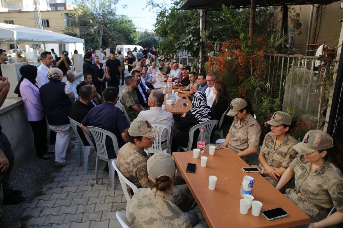 İskenderun Bekbele Mahallesi’nde bulunan baba ocağında okunan mevlit ve yapılan dualar sonrasında HBB ekipleri tarafından Şehit Ferhat Gedik anısına yemek ve ikram dağıtımı yapıldı. Vatan ve bayrak sevgisinin en anlamlı örneği olan şehitlik mertebesini yaşatan aile bireylerini unutmayan HBB Genel Sekreter Yardımcısı Kandemir, şehit annesi Hatice Gedik’e Türk Bayrağı hediye etti ve HBB Başkanı Mehmet Öntürk’ün baş sağlığı dileklerini iletti.