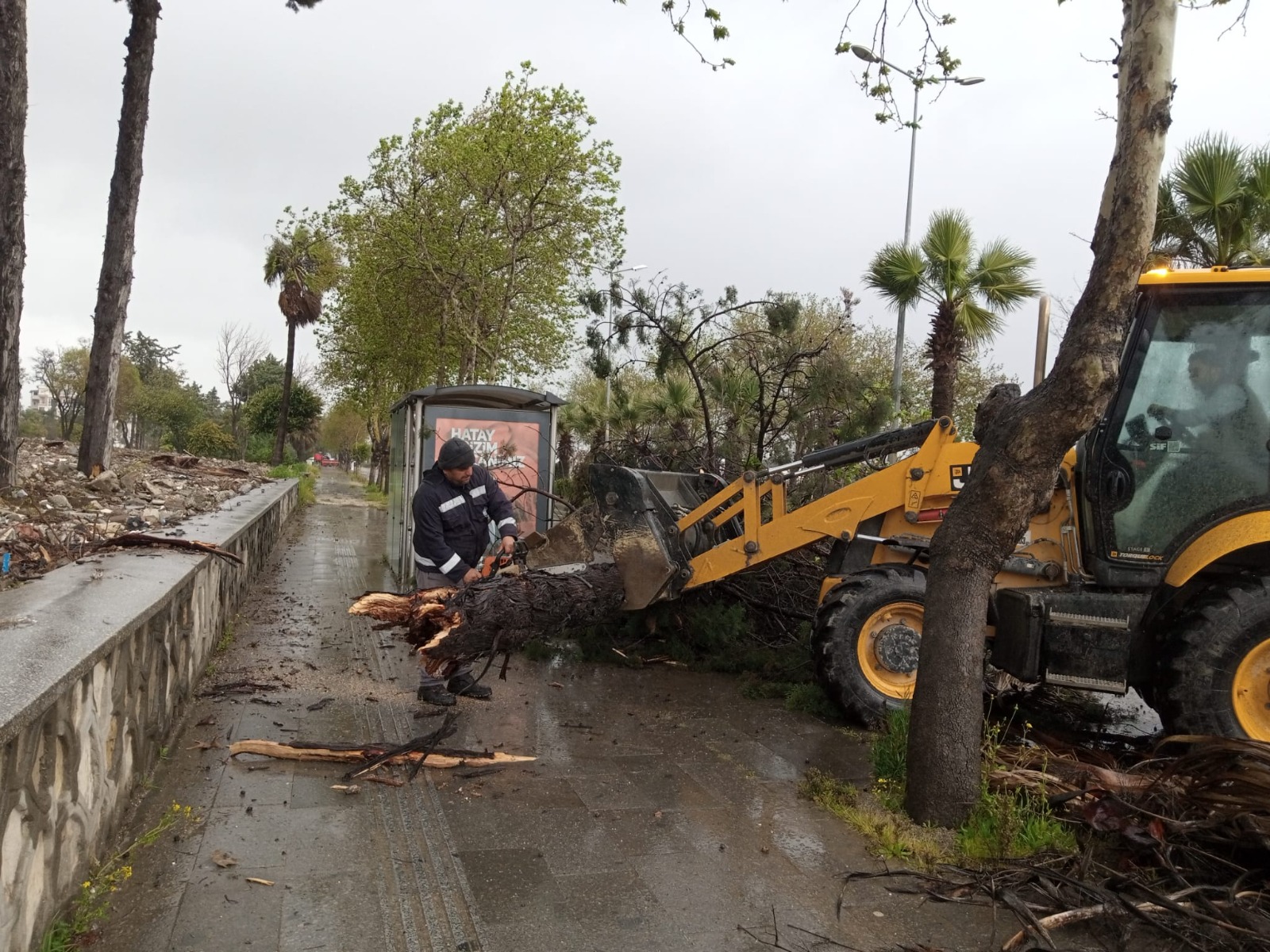 Hatay Büyükşehir Belediyesi, şiddetli yağış sonrasında il genelinde müdahalelerde bulunuyor.