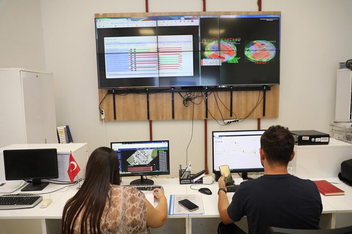 Hatay Büyükşehir Belediyesi Trafik Kontrol Merkezi şehir genelinde ulaşım ağının düzenli ve güvenli bir şekilde akışını sağlamak amacıyla 7/24 çalışmalarını sürdürüyor.