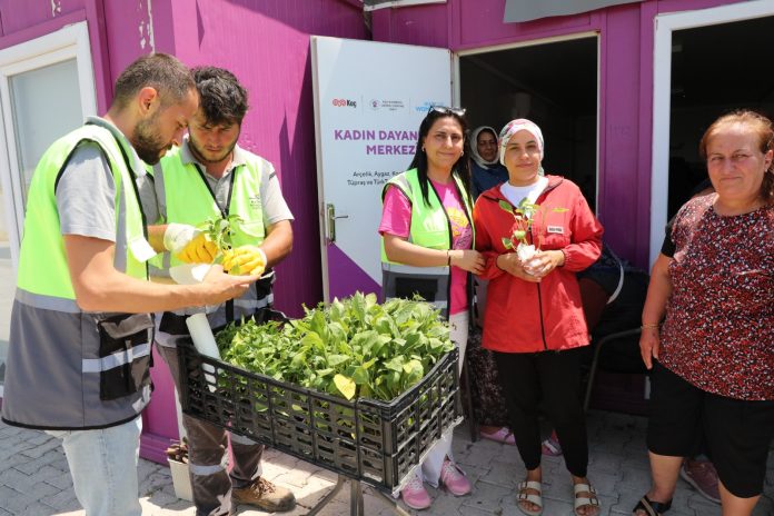 Hatay Büyükşehir Belediyesi  konteyner kentlerde yaşayan vatandaşlara domates, biber ve patlıcan fidesi dağıttı.