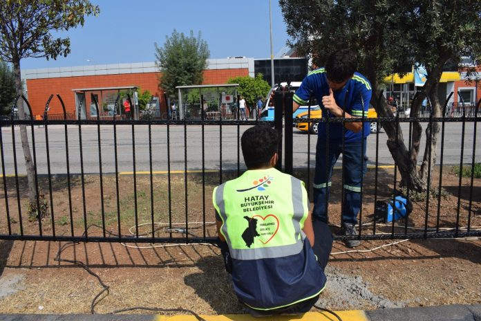 HBB ekipleri, Belen ilçesi yönünden, İskenderun şehir merkezine giriş yolunda; Merkez PTT binası önünden Şehit Astsubay Ferhat Gedik Alt Geçidi’ne kadar olan bölümde 220 metre uzunluğunda “ Ferforje Demir Korkuluk” montajını gerçekleştiriyor.