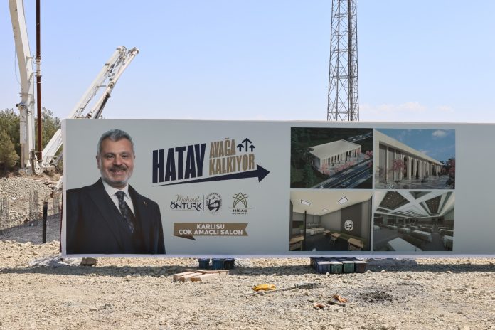 Halı sahalar, adakevleri, kreşler ve fizyoterapi merkezleri gibi pek çok projenin yapımını aynı anda yürüten HİSAŞ, Antakya ilçesi Karlısu Mahallesi’nde kısa süre önce temeli atılan çok amaçlı salon projesinde çalışmalar sürüyor.