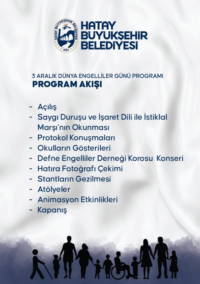 Çocukların, ailelerin ve engelli federasyon derneklerinin katılacağı program, 3 Aralık 2025 Çarşamba günü saat 11.00’de Antakya Altınçay Mahallesi’ndeki TOKİ Çok Amaçlı Spor Salonu’nda gerçekleştirilecek.