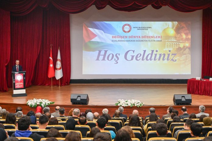 HMKÜ ev sahipliğinde, “Değişen Dünya Düzenleri: Uluslararası Hukukun Değişmeyen Filistin Sınavı” başlıklı panel düzenlendi. Uluslararası Öğrenciler Topluluğu ve Uluslararası İlişkiler Bölümü öğrencileri iş birliğinde Atatürk Konferans Salonunda gerçekleşen ve başkanlığını Eğitim Fakültesi Öğretim Üyesi Prof. Dr. Servet Hali’nin yaptığı panelde panelist olarak yer alan Yıldız Teknik Üniversitesi’nden Prof. Dr. M. Akif Okur ve Kastamonu Üniversitesi’nden Dr. Hamza Yavuz Filistin meselesinin insani, hukuki ve siyasi boyutlarını değerlendirdi.