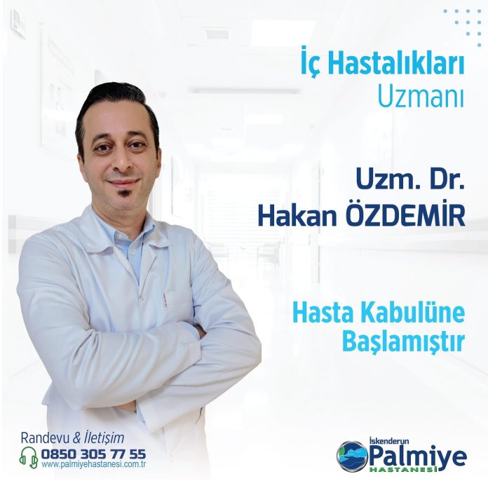 İç Hastalıkları Uzmanı Dr. Hakan Özdemir, İskenderun Palmiye Hastanesi bünyesine katıldı. Uzun yıllar İskenderun Devlet Hastanesi bünyesinde İç Hastalıkları Uzmanı olarak görev yapan Dr. Hakan Özdemir, 1 Kasım itibariyle İskenderun Palmiye Hastanesi’nde hasta kabulüne başlayacak.