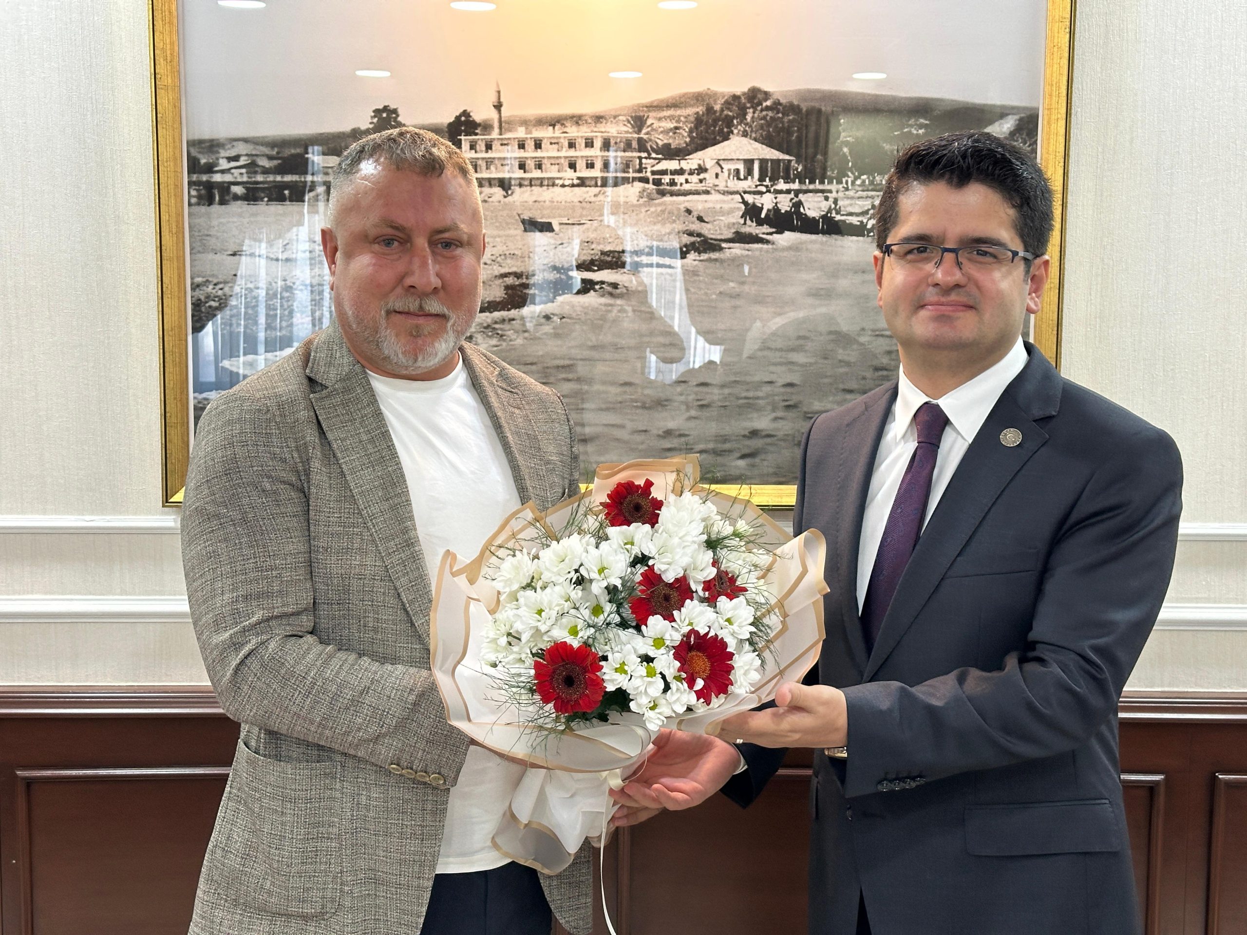 İskenderun Gazeteciler Cemiyeti Başkanı Diyap Atar, yönetim kurulu üyeleri ile birlikte göreve yeni başlayan Arsuz Kaymakamı Fatih Eroğlu’nu makamında ziyaret ederek