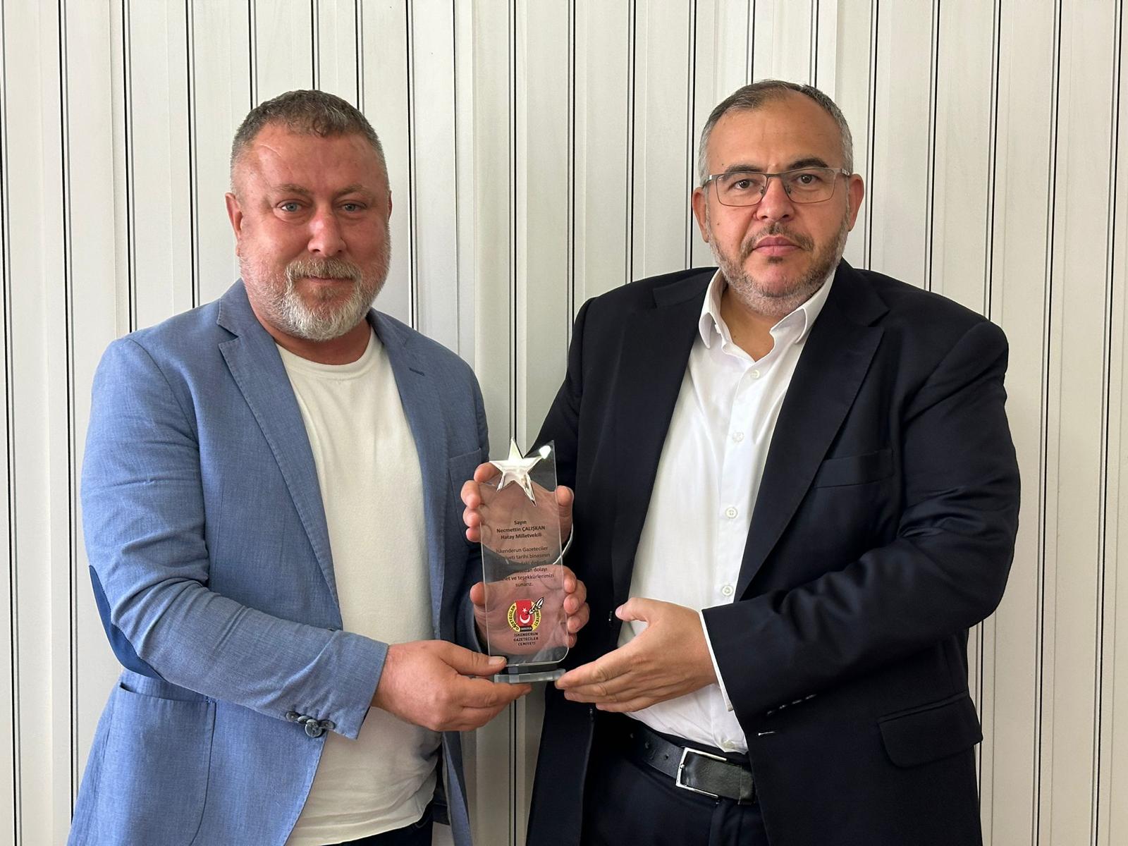 İskenderun Gazeteciler Cemiyeti Yönetim Kurulu, Saadet Partisi Hatay Milletvekili Necmettin Çalışkan‘ı ziyaret etti ve kendisine plaket takdim etti.
