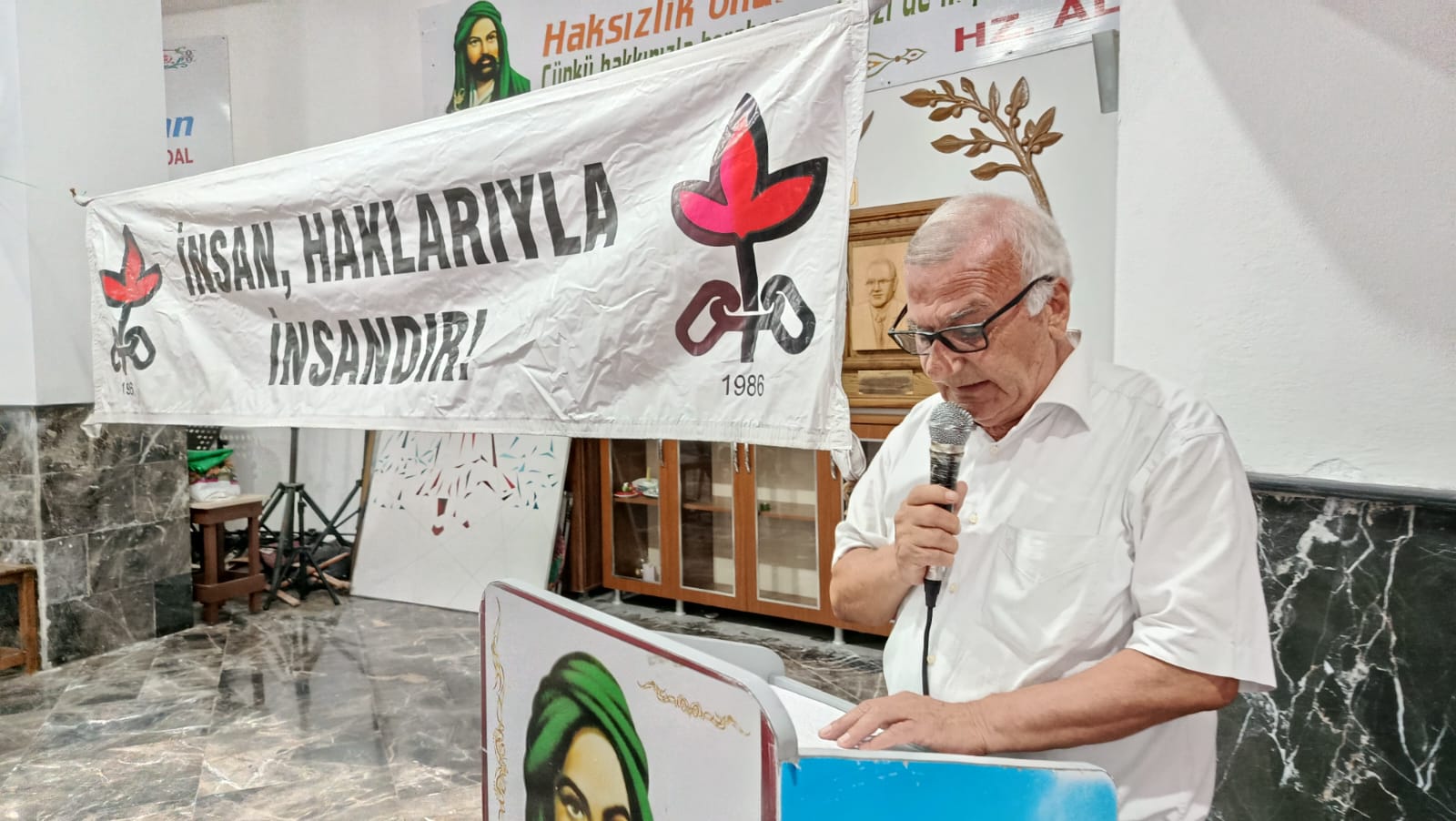 İHD İskenderun Şubesi Eş Başkanı Adil Bahtiyar, İnsan Hakları Derneği’nin, 17 Temmuz 1986 tarihinde aralarında mahpus aileleri, aydınlar, yazarlar, gazeteciler, akademisyenler, avukatlar, hekimler, mimar ve mühendisler, öğretmenlerin olduğu 98 insan hakları savunucusunun imzasıyla “İnsan hak ve özgürlükleri konusunda çalışmalar yapmak” amacıyla kurulduğunu hatırlattı.