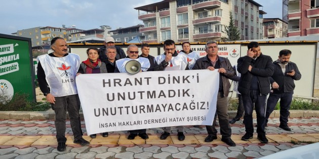 İnsan Hakları Derneği Hatay Şubesi Eş Başkan Mürsel Tonguç Salmanoğlu, anma töreninde yaptığı konuşmasında, “Hrant Dink ırkçılığa karşı mücadelemizde yaşıyor, yaşayacak” vurgusunu yaparak şu görüşlere yer verdi: