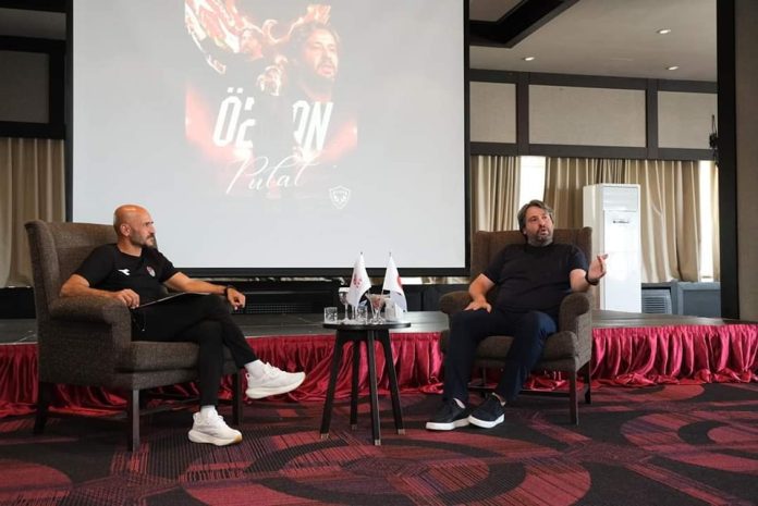 Atakaş Hatayspor Teknik direktörü Özhan Pulat, Erzurum’da devam eden, Türkiye Futbol Federasyonu’nun düzenlediği UEFA A ve UEFA B Antrenör Eğitim Programları kapsamında, antrenör ve antrenör adaylarının katılımıyla “İletişim ve Liderlik” konulu bir seminer verdi.