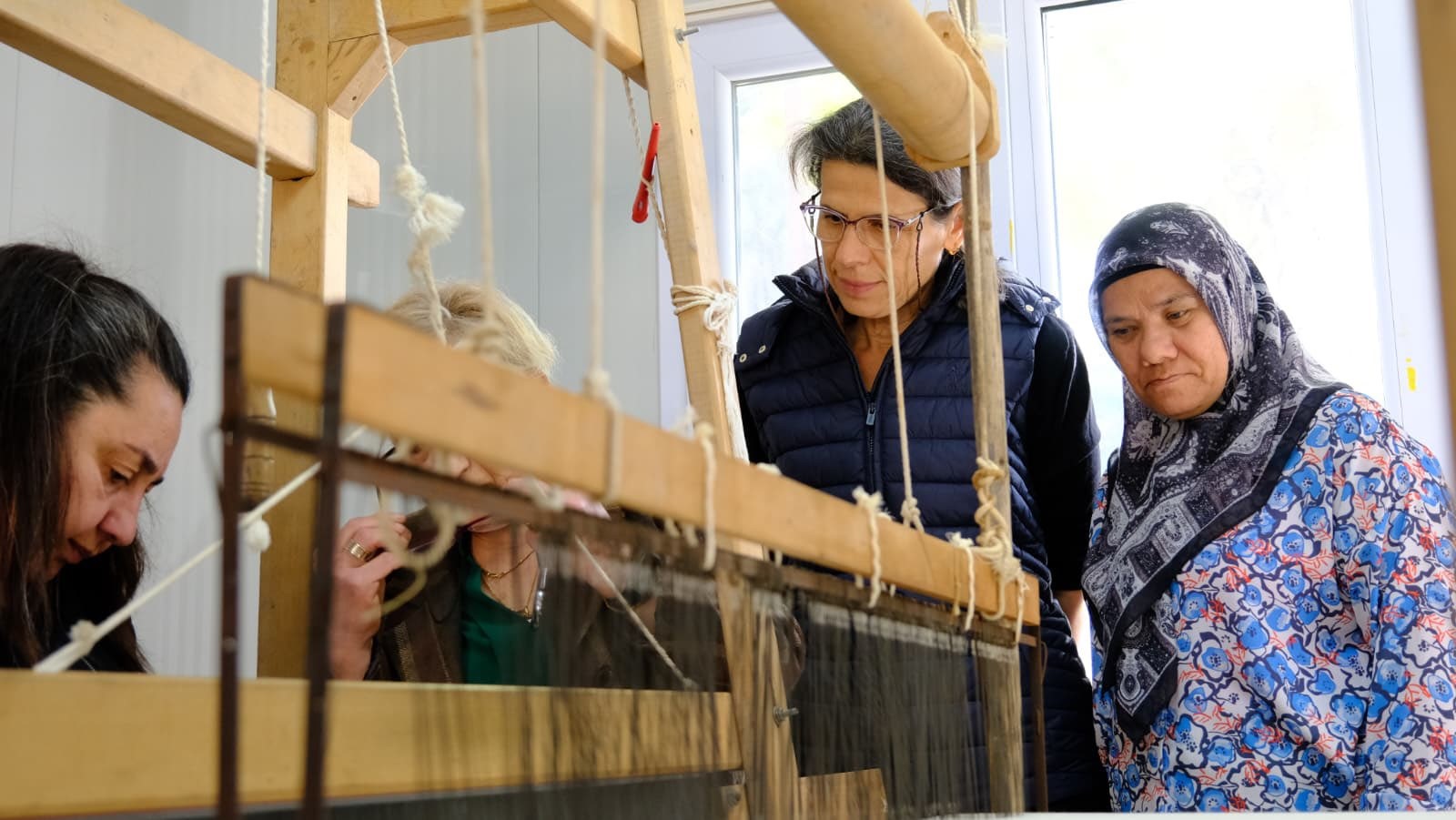 Nedime Keser Halk Eğitim Merkezi iş birliğiyle ve usta öğretici Mucibe Oruç eşliğinde gerçekleştirilen kursta, kursiyerler geleneksel dokuma tekniklerini uygulamalı olarak öğreniyor.
