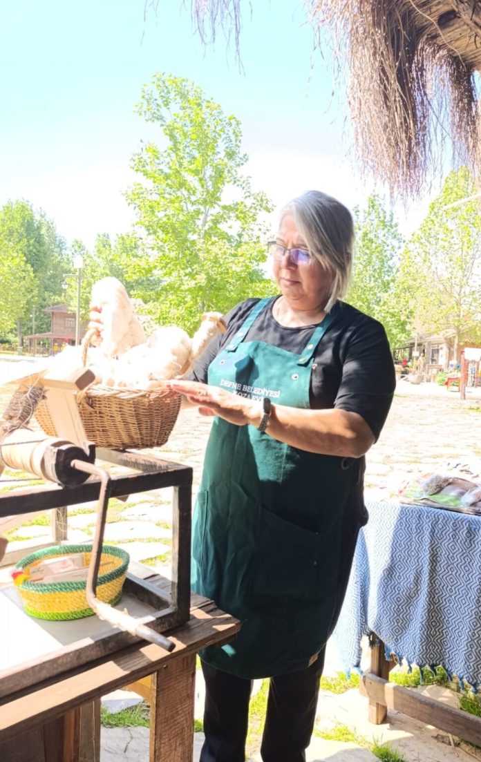 Altındağ Belediyesi tarafından düzenlenen ve Türkiye’nin dört bir yanından gelen yöresel sanatçıların katılımıyla gerçekleşen etkinlikte, Defne Belediyesi Koza Evi yöneticisi ipek dokuma sanatçısı Tülay Genç de yer aldı. Ankara’daki Altınköy Açık Hava Müzesi’nde gerçekleştirilen etkinlikte Genç, ipek dokumacılığının önemli bir aşaması olan iplik çekimi konusunda canlı performans sergiliyor.