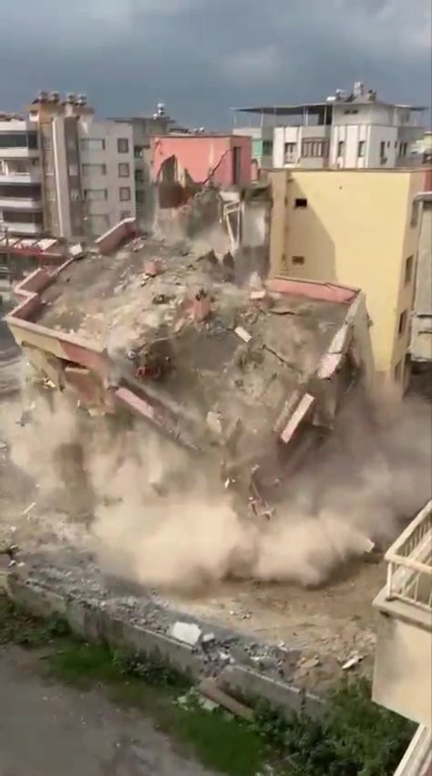 Hatay’ın Dörtyol ilçesinde bulunan 4 katlı bina, iş makinesinin dokunuşuyla yerle bir oldu.