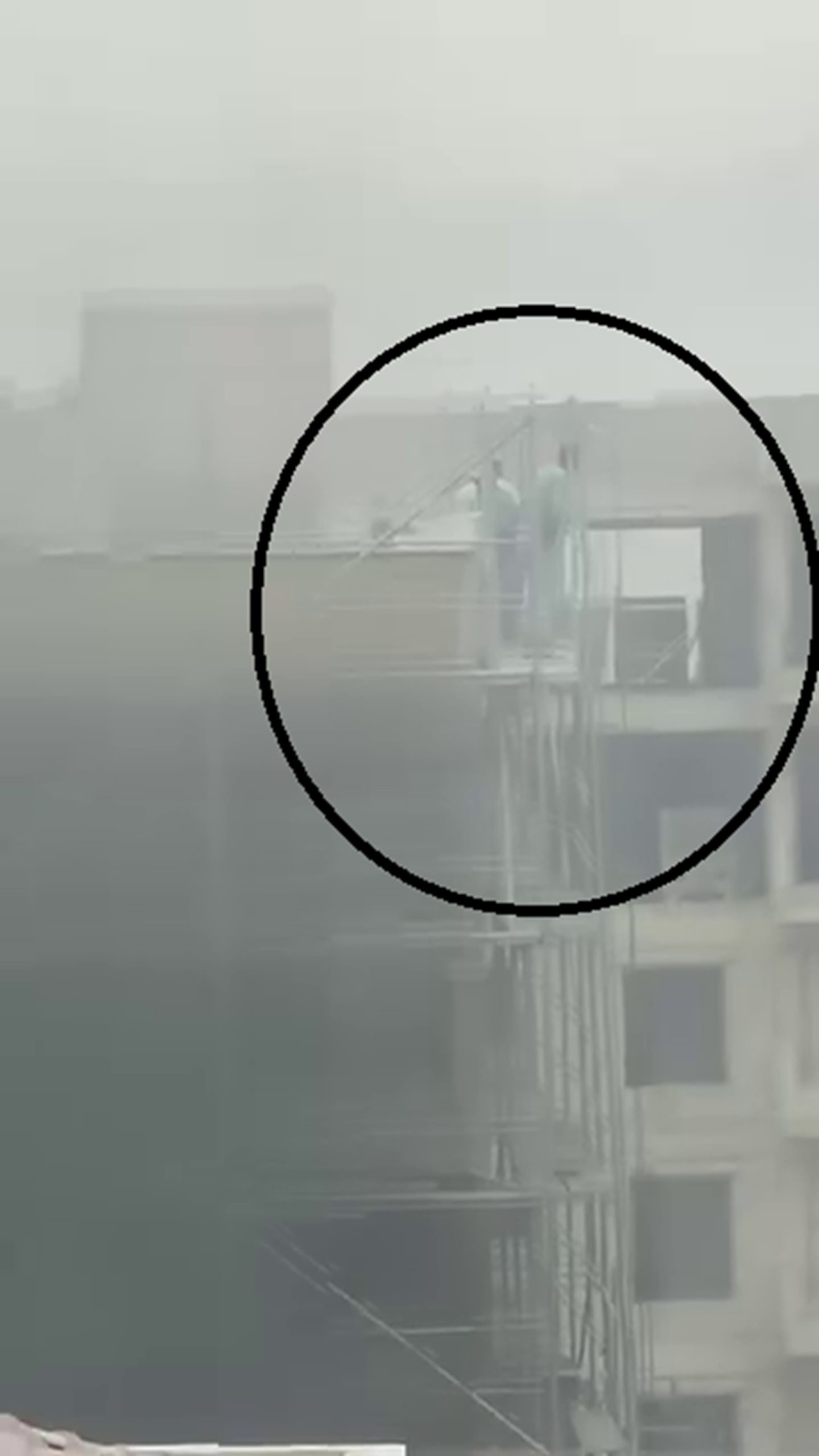 Hatay’da inşaat alanında çıkan yangına iskelede yakalanan işçilerin korku dolu anları kameraya yansıdı.