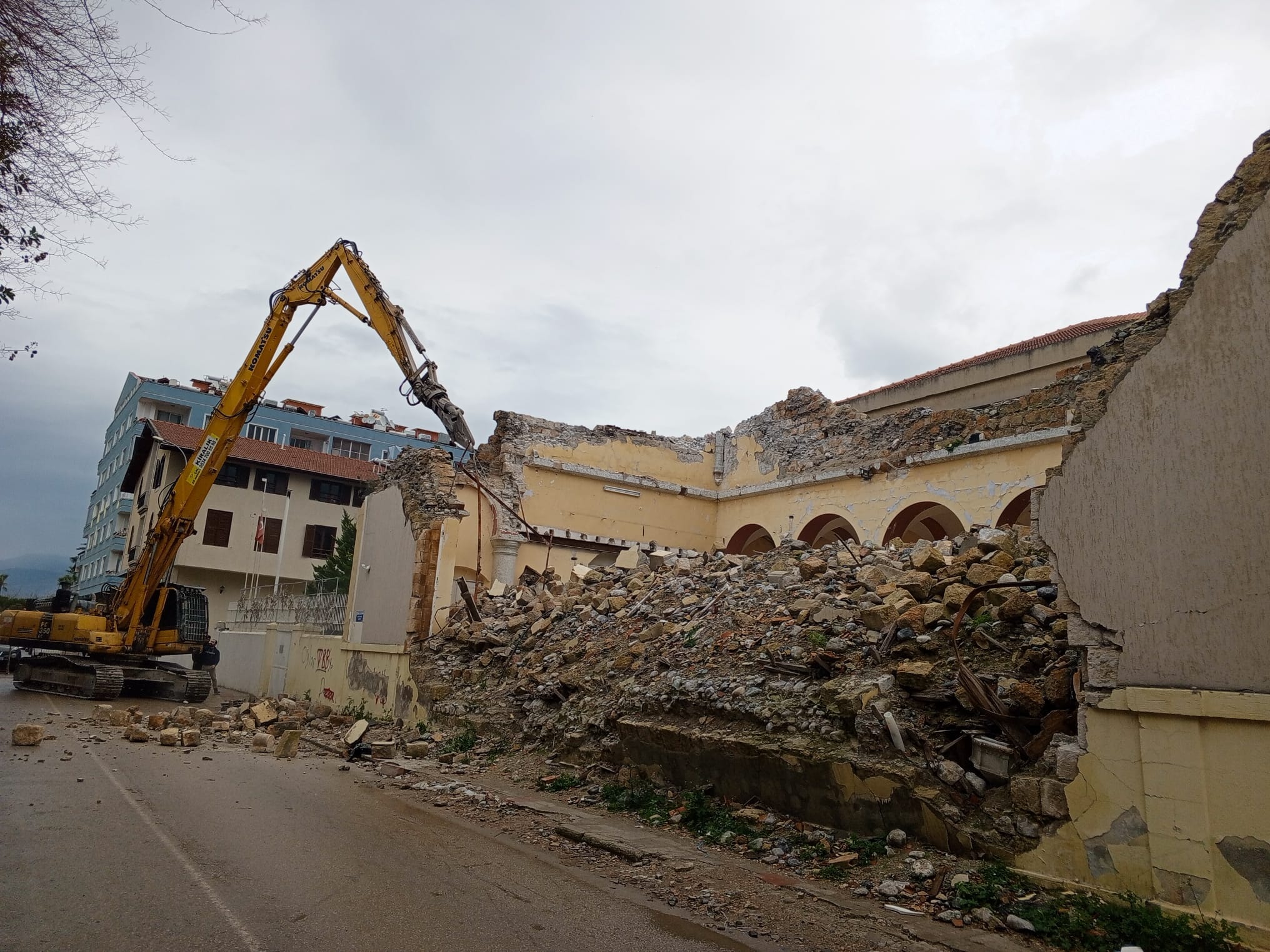 1901 yılında inşa edilmiş olan Katedral, geçtiğimiz yıl yaşanan felakette tamamen yıkılmıştı. Katedralin tam olarak yıkılmayan ön duvarı ise aldığı hasar nedeniyle oldukça ciddi tehlike arz ediyordu. Gerekli incelemelerin yapılması ve uzun süren yazışmaların ardından izinlerin alınmasının akabinde duvarın yıkımı kontrollü bir şekilde tamamlandı. Katedralin ön duvarı yaklaşık bir yıldır tehlike arz ediyordu.