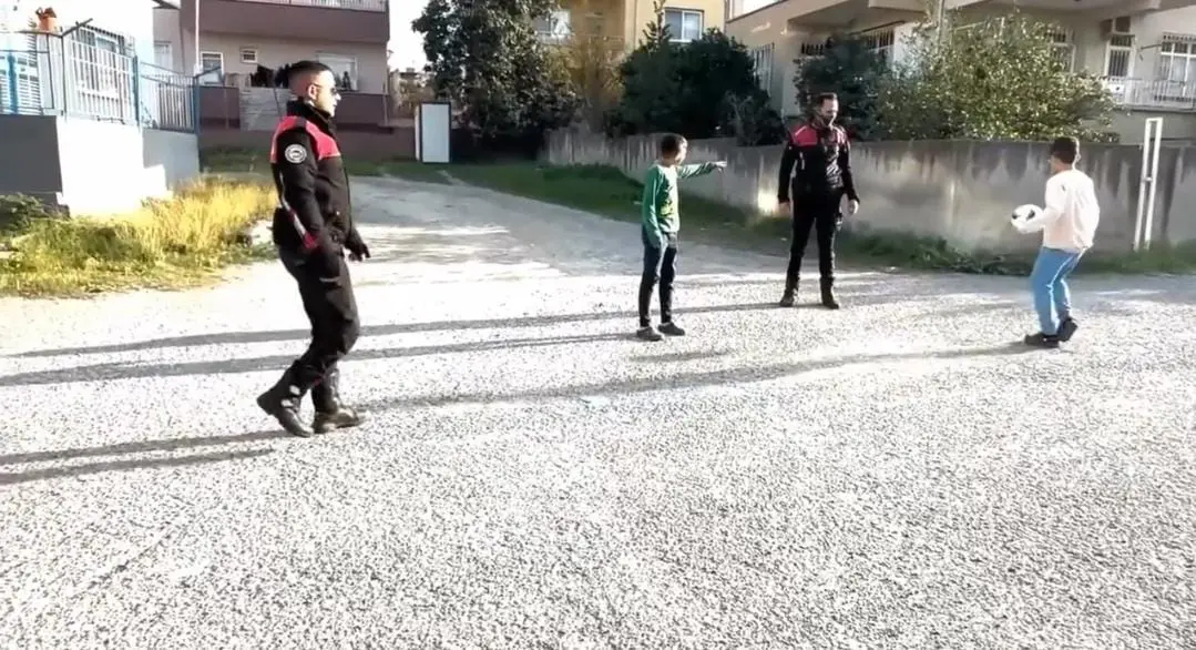 Evde, sokakta ve sahada oynayabileceği bir futbol topuna ihtiyaç duyduğunu belirten Eymen’in talebi, kısa sürede karşılık buldu. Yunus timlerinde görevli polis memurları, getirdikleri futbol topu ve eşofmanı Eymen’e teslim ederek küçük çocuğun yüzünü güldürdü. Polisler, sürprizin anısına Eymen’le birlikte kısa süreli futbol da oynadı.