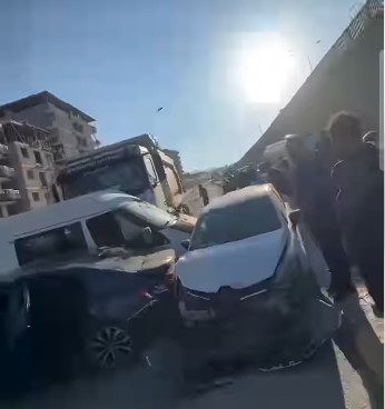 Hatay’ın İskenderun ilçesinde, Şekere köprüsünde, bir inşaat kamyonu 3 araçla birden çarpıştığı kaza meydana geldi.