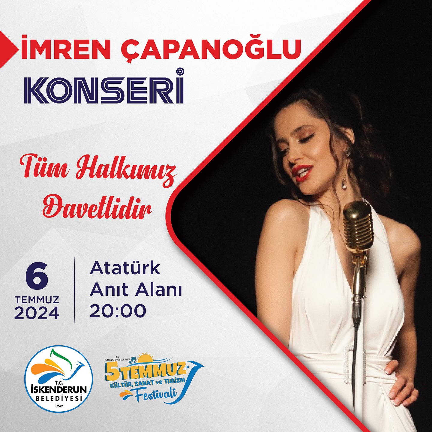 6 Temmuz saat 16.00’da Belediye Kültür Sarayı’nda İskenderun Belediyesi Musiki Derneği Türk Halk Müziği Konseri, saat 19.00’da sahil spor kompleksinde Wushu Kung-fu turnuvası Ayakkabıcılar Çarşısında da tavla turnuvası, saat 20.00’da Anıt Alanında İmren Çaparoğlu konseri, saat 21.00’da Anıt Alanında Uğur Arslan konseri düzenlenecek.