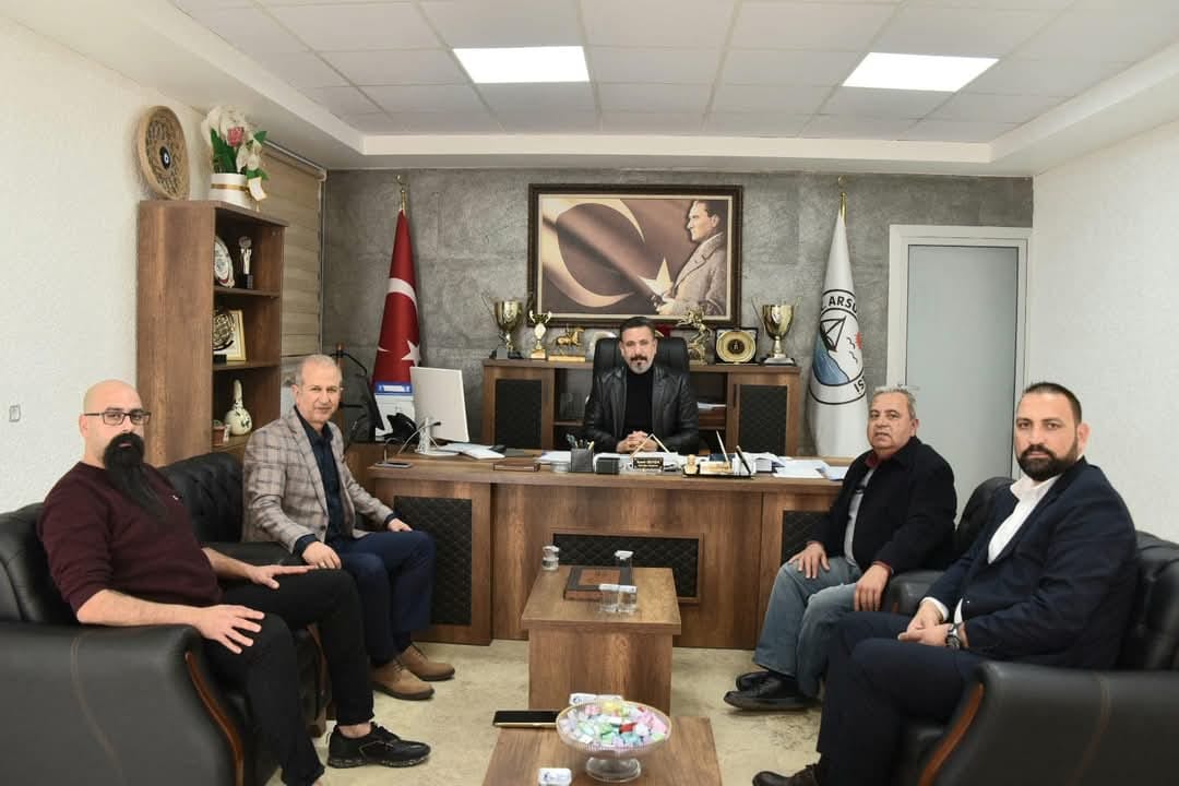 Yönetim Kurulu üyeleri Emir Horuz, Semir Tultak ve esnaflarından Ümit Aytaş’ın katılımıyla birlikte Arsuz Belediye Başkanı Sami Üstün’ü makamında ziyaret eden Başkan Çöloğlu: