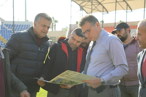 İskenderun Belediye Başkanı Mehmet Dönmez Sarıseki stadındaki çalışmaları inceledi.