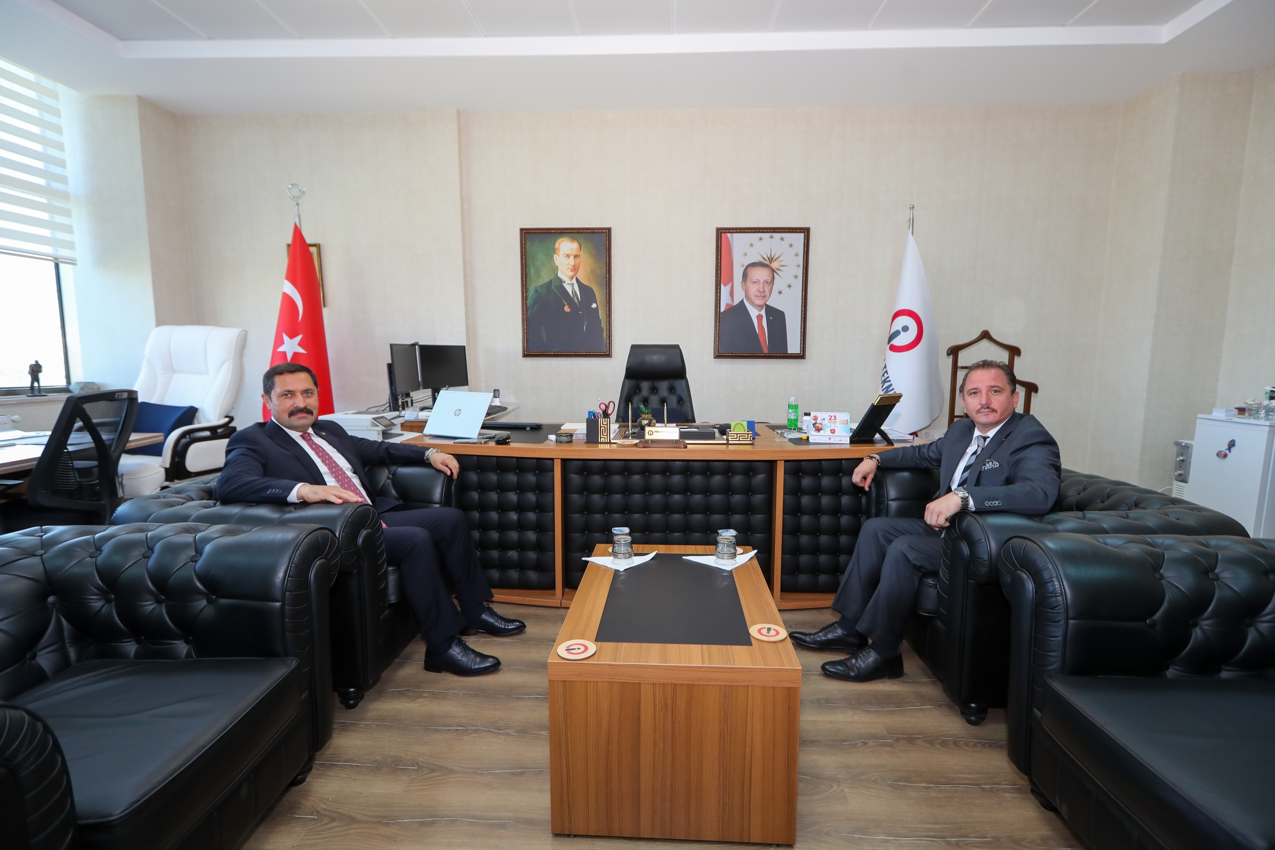İskenderun Teknik Üniversitesi (İSTE) Rektörü Prof. Dr. Tolga Depci Hatay Valisi Mustafa Masatlı’yı ağırladı. 16 Nisan Salı günü İSTE Rektörlük Makamında gerçekleştirilen ziyarette Vali Masatlı, İSTE’de süren çalışmalar ile ilgili bilgi aldı. İSTE’yi ziyaret ederek, Rektör Prof. Dr. Tolga Depci ile görüşen Hatay Valisi Mustafa Masatlı deprem sürecinde ve sonrasında yaptığı çalışmalar için Rektör Depci’ye ve ekibine teşekkür etti.