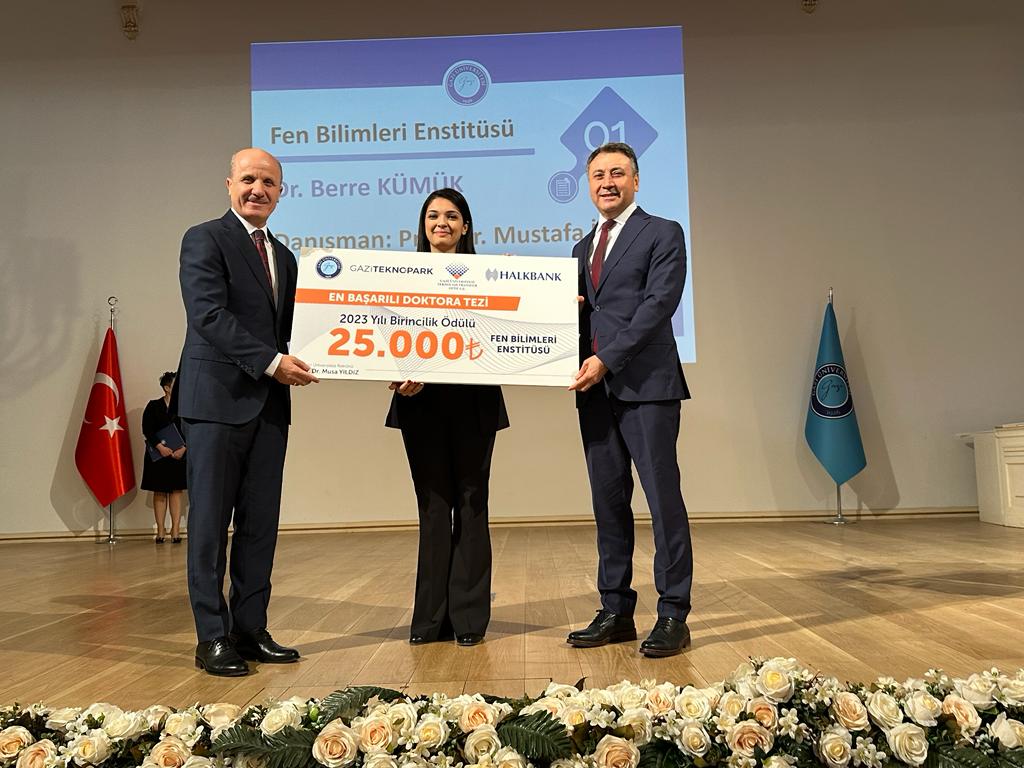İskenderun Teknik Üniversitesi (İSTE) Motorlu Araçlar ve Ulaştırma Teknolojileri Bölüm Başkanı Dr. Öğr. Üyesi Berre Kümük “En Başarılı Doktora Tezi Ödülleri” töreninde ödülünü YÖK Başkanı Prof. Dr. Erol Özvar’dan aldı.