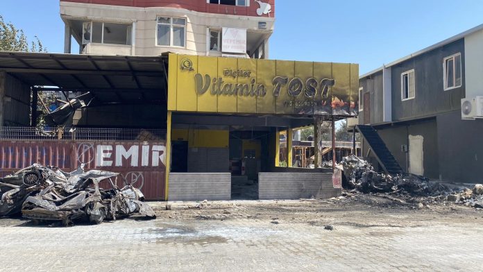 Hatay’ın Antakya ilçesinde bulunan sanayi sitesinde çıkan yangında, hasarlı iş yeri ve hurda araçlar alevlere teslim olarak yandı.