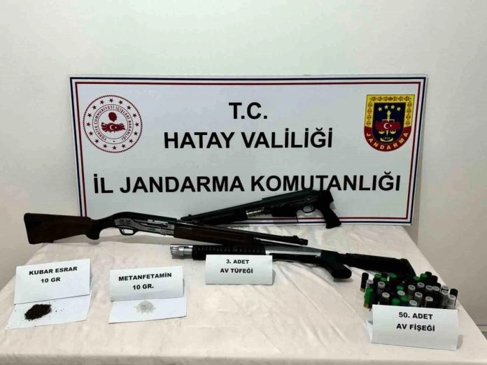 Yapılan uygulamada 7 adet silah ve çok sayıda uyuşturucu madde ele geçirildi. Hatay İl Jandarma Komutanlığı ekipleri, il genelinde uyuşturucu madde ve kaçakçılıkla mücadele çalışmalarını sürdürüyor. Jandarma ekiplerinin gerçekleştirdiği operasyonlarda; 24 şüpheli şahsın üst, ikamet ve araçlarında yapılan aramalarda 5 adet Av tüfeği, 2 adet 7.65 mm tabanca, 836 Captagon, 80 gram Metamfetamin, 375 gram Kubar Esrar, 256 gram Kannobionid, 35 Extacy hap ve 90 yeşil reçete ile satılan hap ele geçirildi.