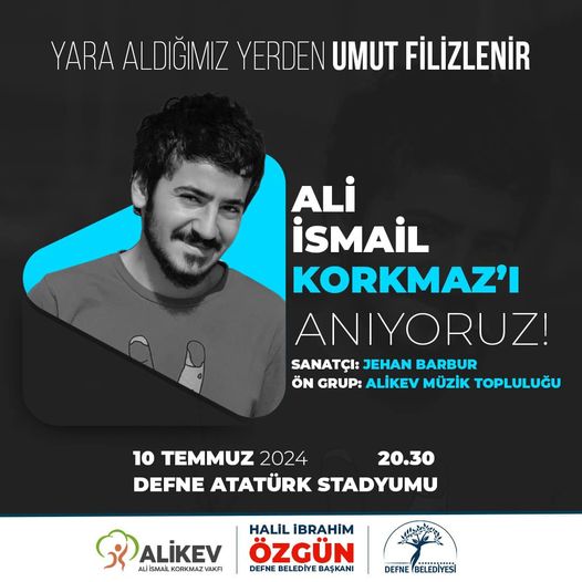 Ana SayfaDefneJehan Barbur Ali İsmail için söyleyecek DefneDefne Haber Jehan Barbur Ali İsmail için söyleyecek By Korfez Gazete Haber 6 Temmuz 2024 0 46 Paylaş FacebookTwitterPinterestWhatsApp Defne belediyesi, gezi eylemleri sırasında Eskişehir’de dövülerek öldürülen Ali İsmail korkmaz anısına bir konser düzenledi. Konser 10 Temmuz Çarşamba günü10 Temmuz saat 20.30’deAtatürk stadında Konserde Sanatçı Jehan Barbur sahne alacak Paylaş FacebookTwitterPinterestWhatsApp Önceki İçerikAnadolu basını yaşam mücadelesindeSonraki İçerikFestival zafer yürüyüşüyle başladı Korfez Gazete Haber RELATED ARTICLES Defne Otomobil seyir halinde alev aldı 7 Aralık 2025 Defne Defne’de samanlık yangını çıktı 6 Aralık 2025 Defne Defne’de konteyner yangını 4 Aralık 2025 Yorum Yaz İptal Yorum: Lütfen yorumunuzu giriniz! İsim:* Lütfen isminizi buraya giriniz E-Posta:* Yanlış bir e-posta adresi girdiniz! Lütfen e-posta adresinizi buraya girin Website: Ismimi, e-postamı ve web sitemi bir dahaki sefere bu tarayıcıya kaydet. Δ EN SON HABERLER Suriyeli çocuk diri diri gömülmüş 7 Aralık 2025 Vatandaşların taleplerin Bakana iletti 7 Aralık 2025 Ev yangını itfaiye tarafından söndürüldü 7 Aralık 2025 Otomobil seyir halinde alev aldı 7 Aralık 2025 Devamını Göster