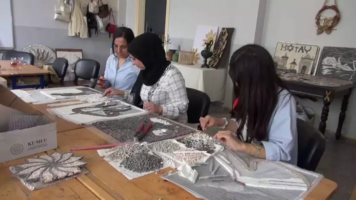 Kumlu Halk Eğitimi Merkezi’nin bir süre önce açtığı mozaik sanatı ve dekoratif ev ürünleri kursuna büyük çoğunluğu kadın olan 150 kişi katıldı. Evde oturmak yerine kursa gelerek mozaik sanatını öğrenen kadınlar, kısa sürede birbirinden güzel eserler ortaya çıkardı. Kursiyerler el emeği göz nuru ile bir yandan mozaikle taşları nakşediyor, diğer yandan da geri dönüşüm eğitimleriyle eski ürünleri yeniliyorlar.