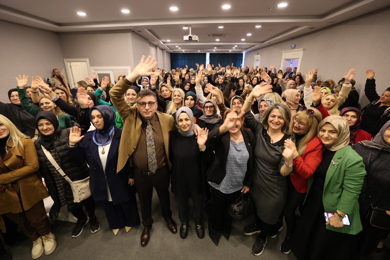 Toplantıya eşi Neslihan Dönmez ile birlikte katılan Cumhur ittifakı İskenderun belediye başkan adayı Mehmet Dönmez Kadınların insan hayatının her alanında büyük önem taşıdığına vurgu yaparak, İskenderun’u kadınların her alanda haklarının verildiği bir kent haline getireceğini söyledi.,