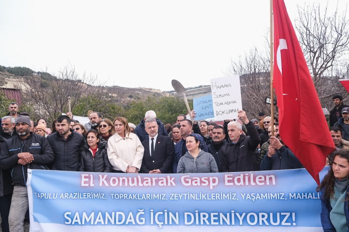 Hatay’ın Samandağ ilçesi Mağaracık Mahallesi’nde bahçe ve tarım arazileri olan vatandaşlar, arazilerinin toplu konut için kamulaştırılmasına karşı bugün eylem yaptı. Eyleme CHP Hatay Milletvekili Nermin Yıldırım Kara da katılarak destek verdi. Mahallede on gündür kamulaştırmaya karşı nöbet tutuluyor.