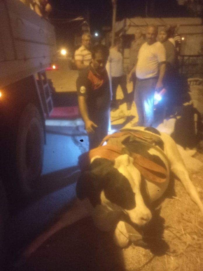 Antakya ilçesi Narlıca Mahallesi’nde bir inek, sulama kanalına düştü. Sulama kanalına düşen ineği görev sahibinin durumu 112 Acil Çağrı Merkezi’ne bildirildi. İhbar üzerine olay yerine Hatay Büyükşehir Belediyesine bağlı itfaiye ekipleri sevk edildi. Kısa sürede bölgeye gelen itfaiye ekipleri, iş makinesinin yardımıyla ineği sulama kanalından kurtardı. İş makinesinin yardımıyla kurtarılan inek, sahibine teslim edildi