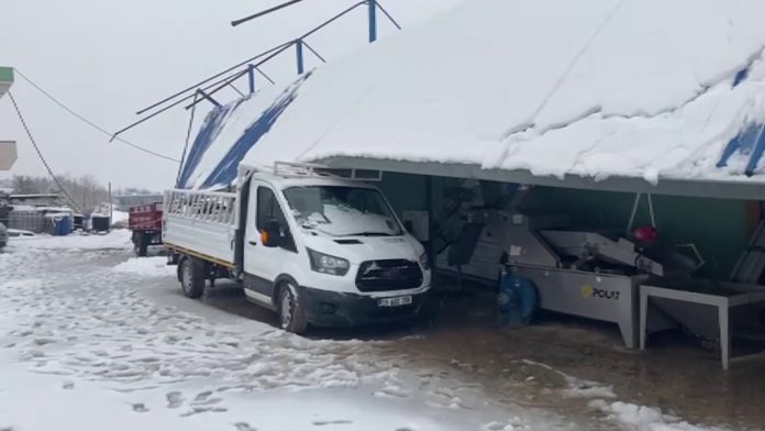 Meteorolojinin şiddetli yağış uyarısında bulunduğu Hatay’da gece saatlerinden itibaren kar yağışı etkili oldu. Şiddetli yağışla birlikte çevre beyaza bürünürken Altınözü ilçesi Mayadalı Mahallesi’nde bulunan zeytinyağı fabrikasının çatısı kar kütlesini taşıyamayarak çöktü. Güvenlik kamerasına yansıyan görüntülerde çatı, park halindeki; traktör, kamyonet ve hafif ticari aracın üzerine devrildi. Olayda yaralanma yaşanmazken, hafif ticari aracın camı zarar gördü.