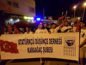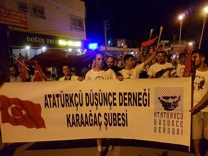 Atatürkçü Düşünce Derneği Karaağaç Şubesi tarafından düzenlenen ve halkın yoğun katılımının sağlandığı Zafer yürüyüşü büyük bir coşkuyla gerçekleştirildi.
