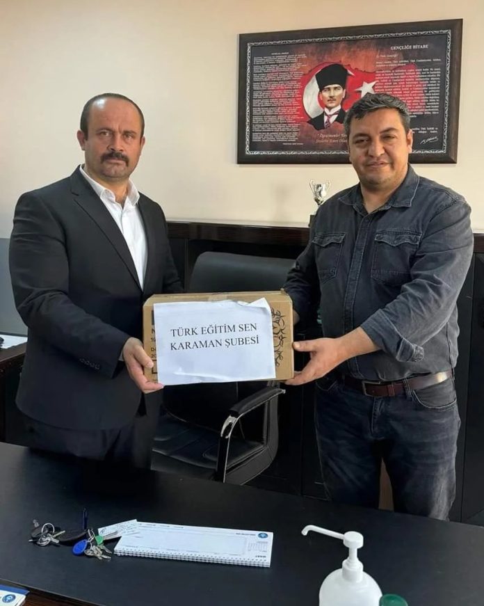 Türk Eğitim Sen Karaman Şubesi tarafından deprem bölgesine gönderilen yardım malzemelerinin Türk Eğitim-Sen Hatay 2 Nolu Şube Başkanı Yavuz Selim Yanık tarafından okullara ve öğrencilere dağıtımı tüm hızıyla sürüyor.