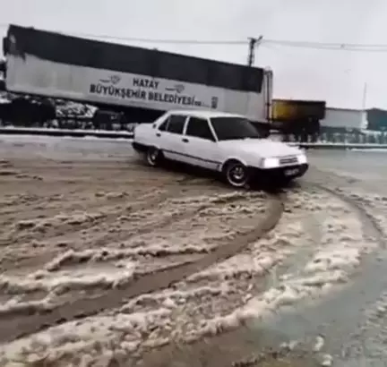 Antakya ilçesinde otomobiliyle karda drift yapan sürücü bu görüntüleri sosyal medya hesabından paylaştı. Görüntüleri ihbar kabul eden polis ekipleri konuyla ilgili yaptıkları çalışmada, sürücüye 63 bin 879 TL ceza uygulayıp, ehliyetine 60 gün el koydu.