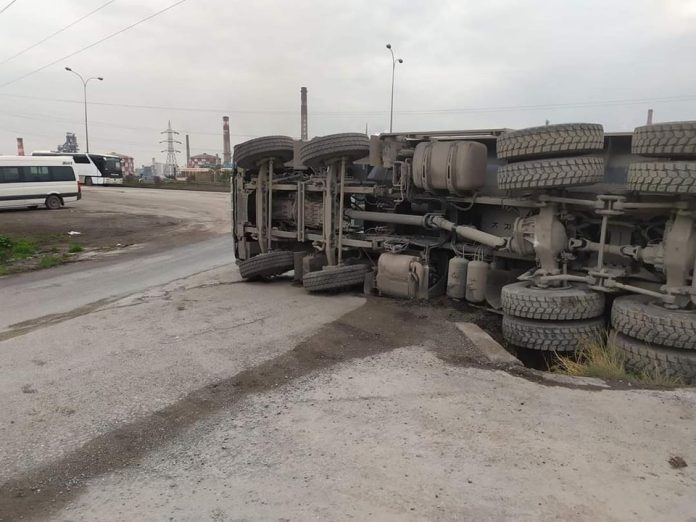 Payas ‘tan İskenderun istikametine gelen taş yüklü kamyon yan yattı.