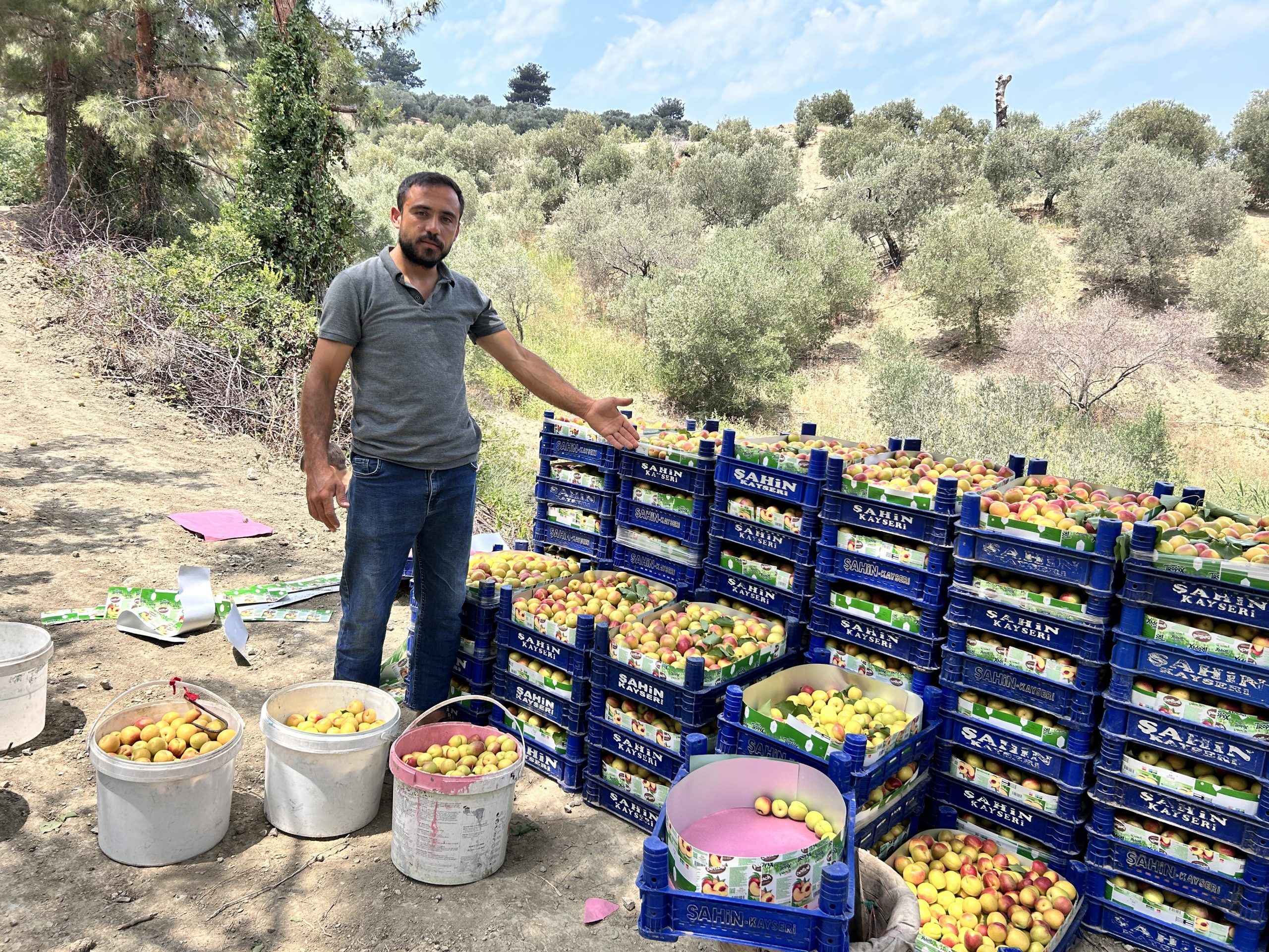 Kavurucu sıcakta sabahın erken saatlerinde hasada başladıklarını söyleyen üretici 33 yaşındaki Sezer Kala, “50 yıllık kayısı ağaçları var, hasada bir hafta önce başladık. Hasat yaklaşık 45-50 gün sürer. Benim arazim yaklaşık 30 dönüm. Bu yıl, 30 dönümlük araziden 40 ton kayısı almayı bekliyoruz. Arazide yaklaşık 300 yetişkin ağaç var. Doğduğum günden beri bu işi yapıyorum. Dışarıdan işçi getiriyoruz; günübirlik ya da mevsimlik işçilerle çalışıyoruz. Yevmiye bin TL. Havalar çok sıcak, önümüzdeki üç gün daha sıcak görünüyor. Üç gün sonra inşallah biraz düşer. Bu sıcaklarda bunaldık. Millet sırtında damacanayla gezecek neredeyse. Şu anda yerinde bu kayısı 50 TL ile 70 TL arasında alıcı buluyor. Daha fiyatlar tam olarak oturmadı, çünkü hasat yeni başladı. Malatya’da her yerde don oldu ama bizim bölgede çiçek donduktan sonra açtığı için etkilenmedik. Şükür, biz dondan zarar görmedik. Malatya dondan çok etkilendi. Allah herkesin yardımcısı olsun. Bu kayısıyla yarışacak başka kayısı yok. Bizim kayısı bambaşka bir şey. Bunun tadını bilen bilir. Şekerpare daha yeni çıktı. Henüz her yere ulaştı mı, ulaşmadı mı bilmiyorum ama ulaşır elbet” şeklinde konuştu.
