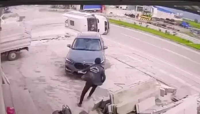 Bu arada kazanın, bir iş yerinin güvenlik kamerasına yansıyan görüntüleri ortaya çıktı.
