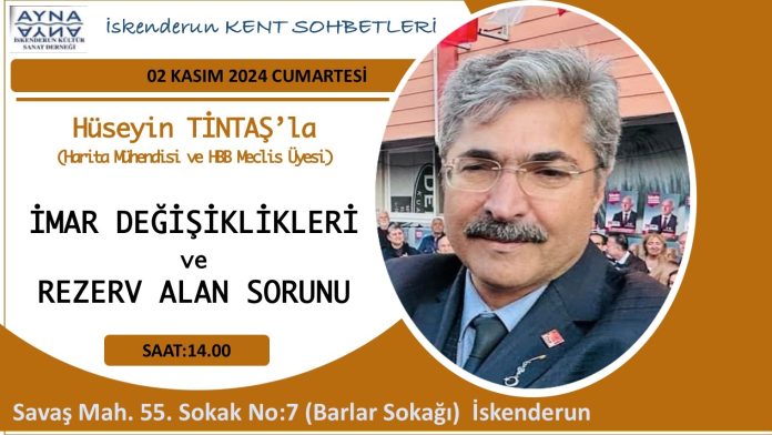 Dernekten yapılan açıklamada “02 Kasım Cumartesi günü Hüseyin Tintaş’la Geleneksel İskenderun Kent Sohbetimize bekliyoruz”dedildi